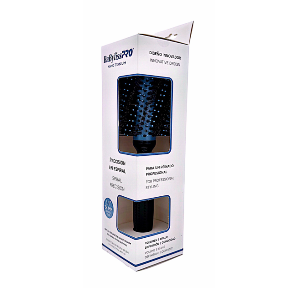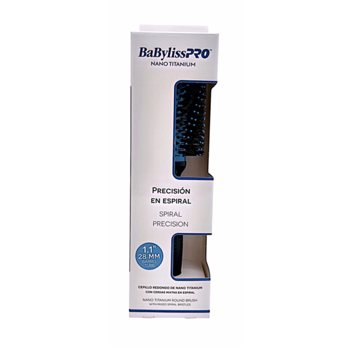 Logra un peinado impecable con el cepillo redondo de nano titanium de 1.1 pulgadas, ideal para dar forma, volumen y definición con acabado profesional. Su diseño con cerdas mixtas en espiral mejora el control del cabello, permitiendo estilizar con mayor precisión.